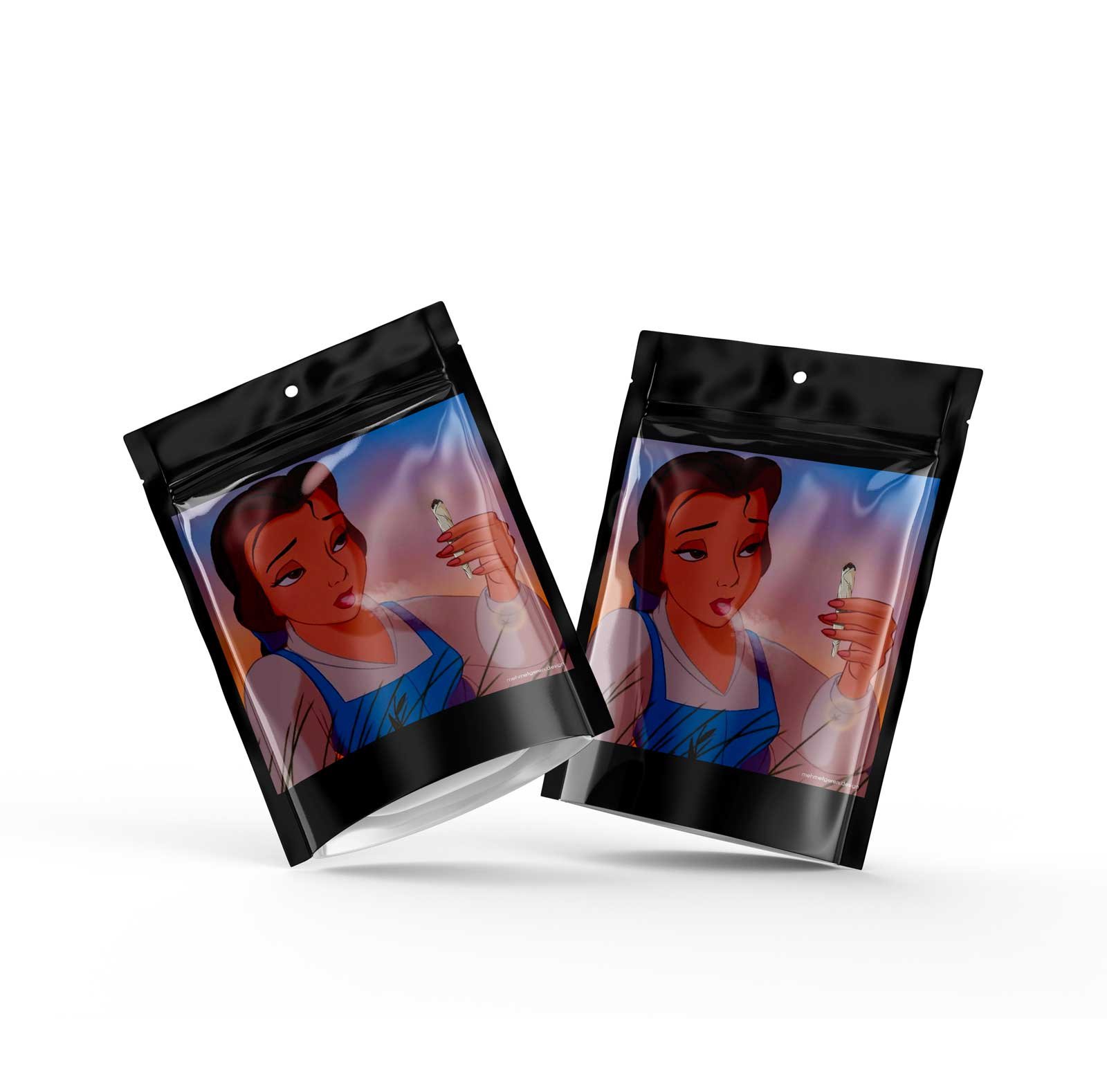 Le Pochon La Belle et la Bête CBD weed associe un visuel inspiré d’un univers féerique à un format pratique et hermétique. Ce pochon plastique aide à protéger le contenu de l’humidité, de la chaleur et des odeurs tout en apportant une touche originale et marquante au packaging.